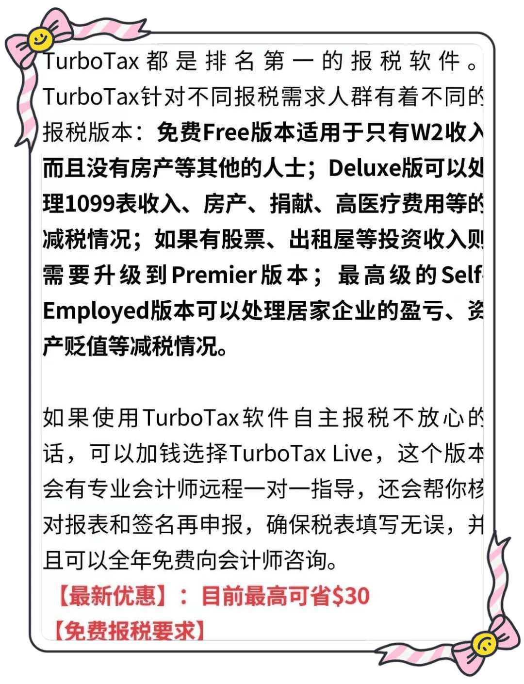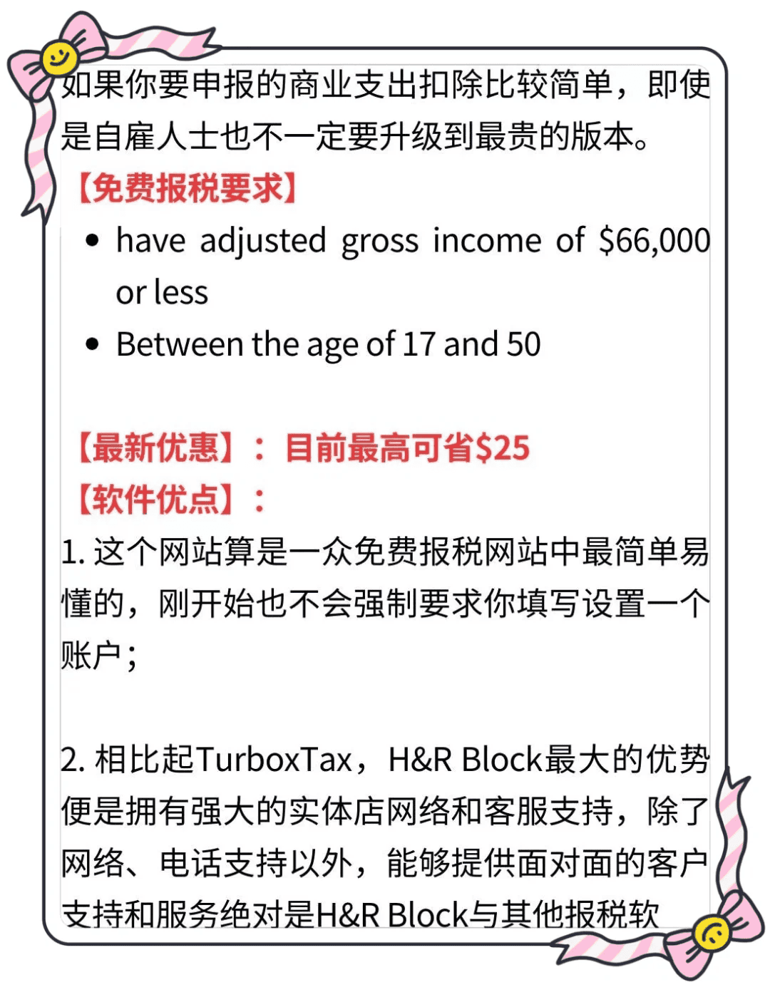 – **适宜人群**:税务情况非常简单,不需要额外服务的用户 。