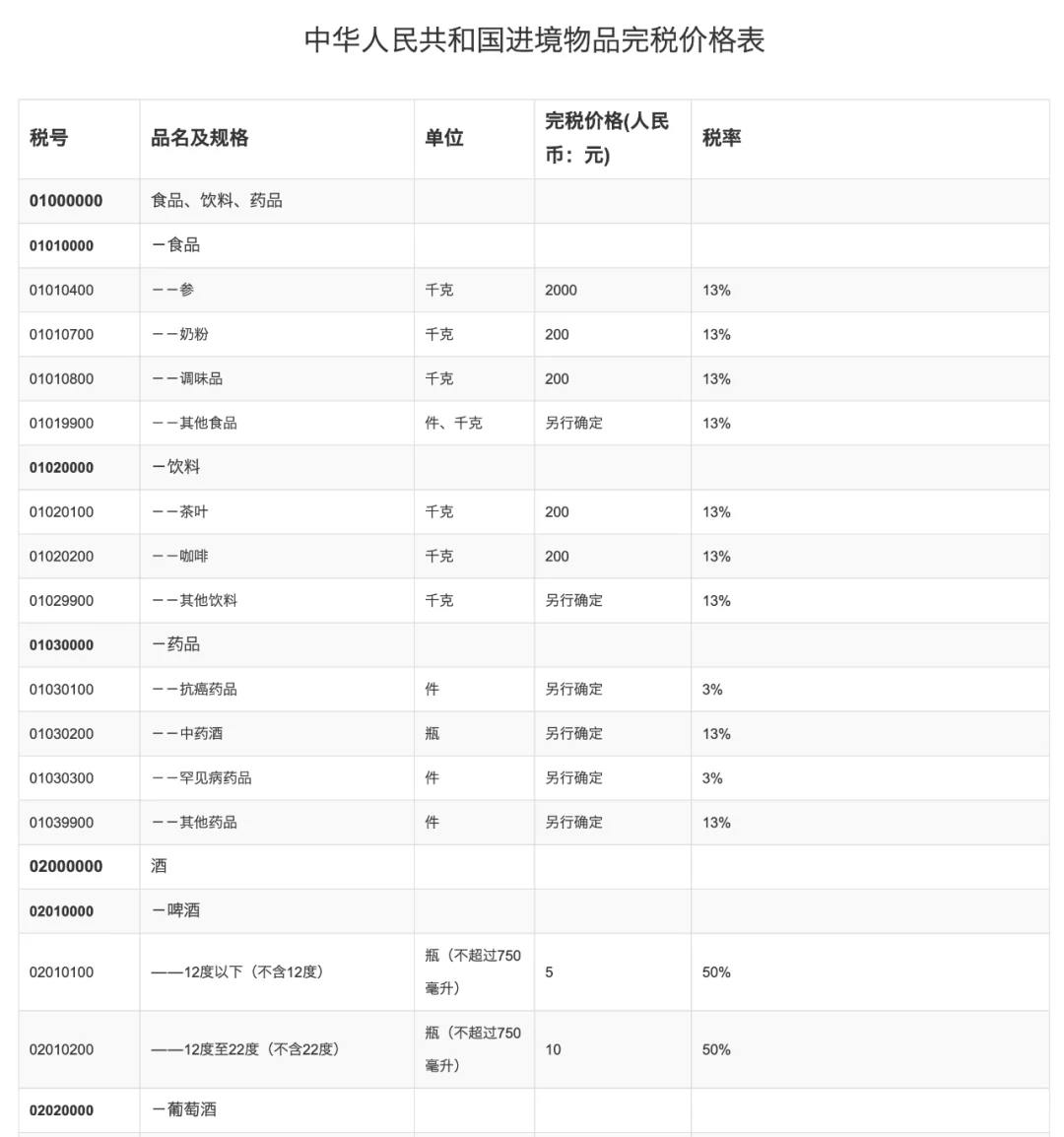 2024最新进境物品完税价格表及相关问题