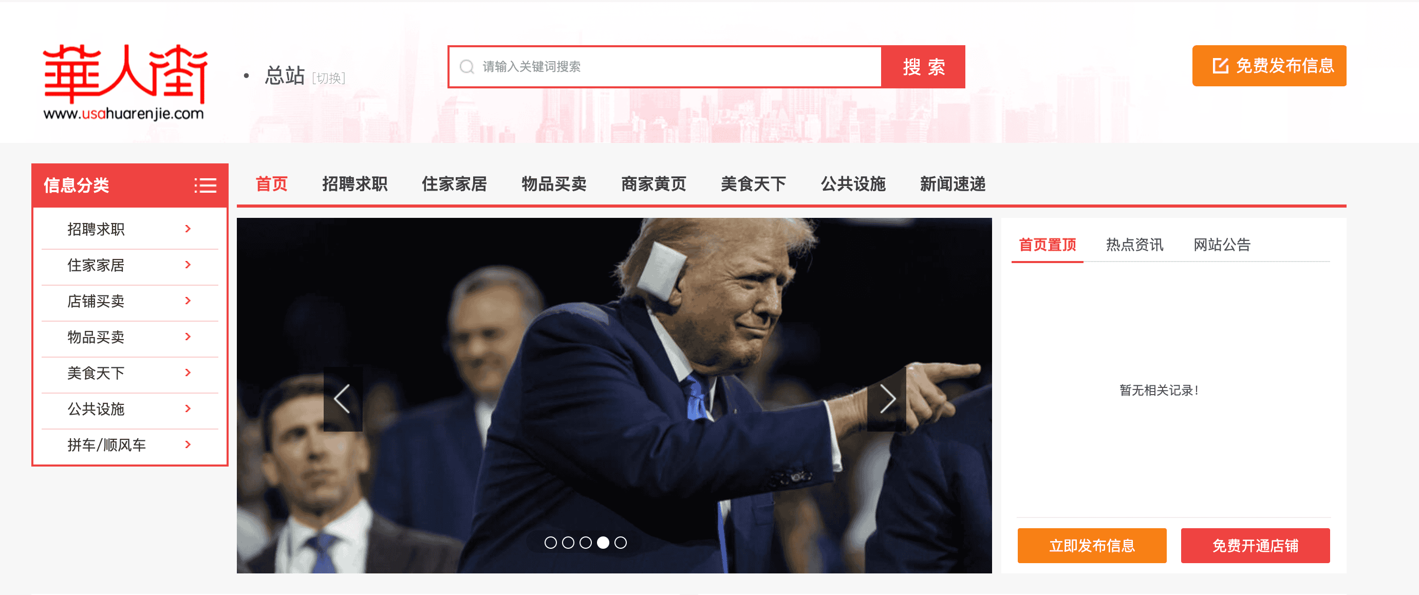 美国华人街生活网官网,招聘,找工作,二手物品,二手车买卖,房屋租售