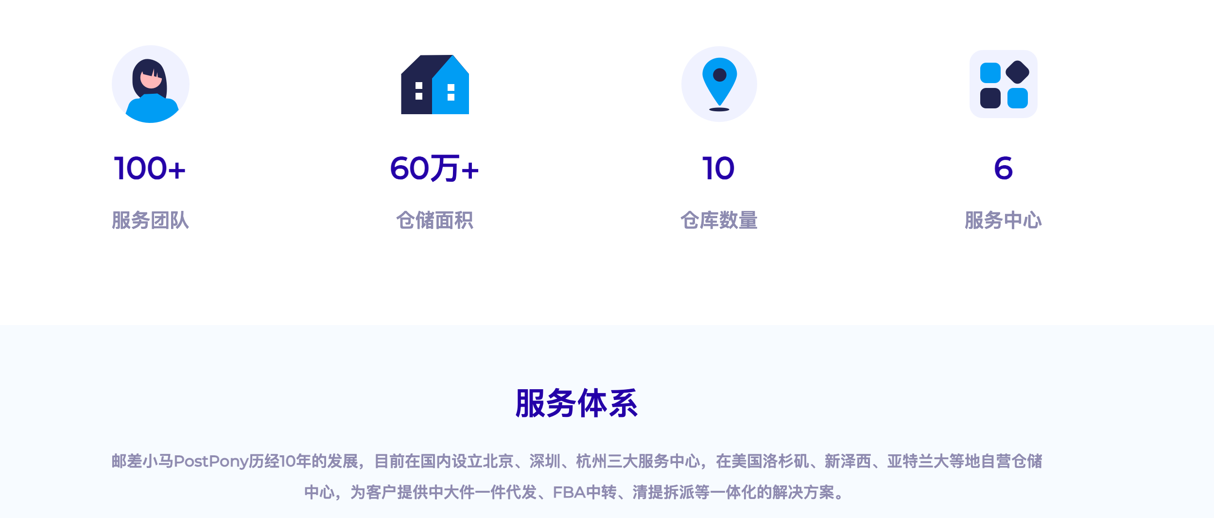 邮差小马以仓储+物流为产品基础,为跨境电商卖家、自发货卖家、FBA空海派等相关企业提供专业的海外仓一件代发、自提中转、末端配送等解决方案。