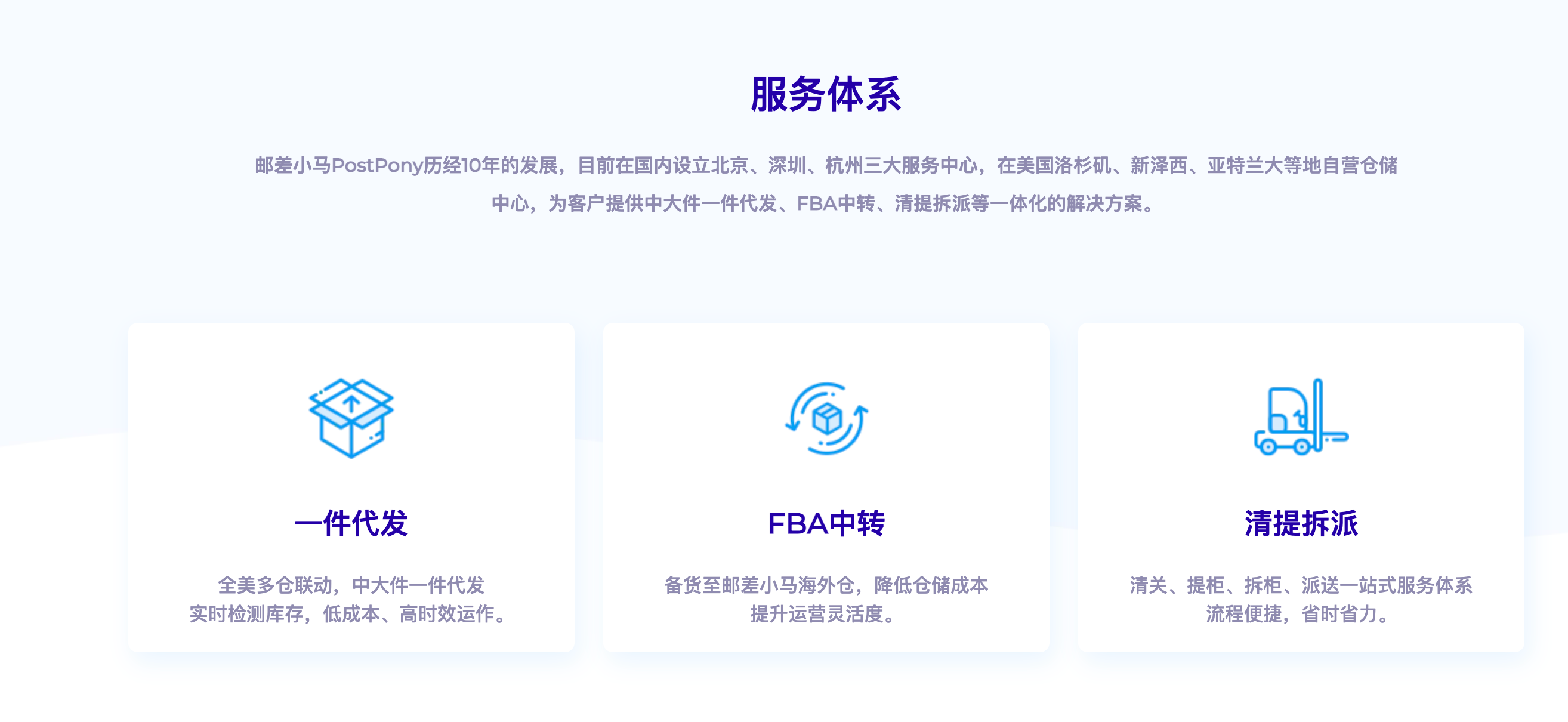 postpony邮差小马官网,提供美国海外仓中大件一件代发、FBA中转、国际快递、末端配送及美国尾程正规快递账号