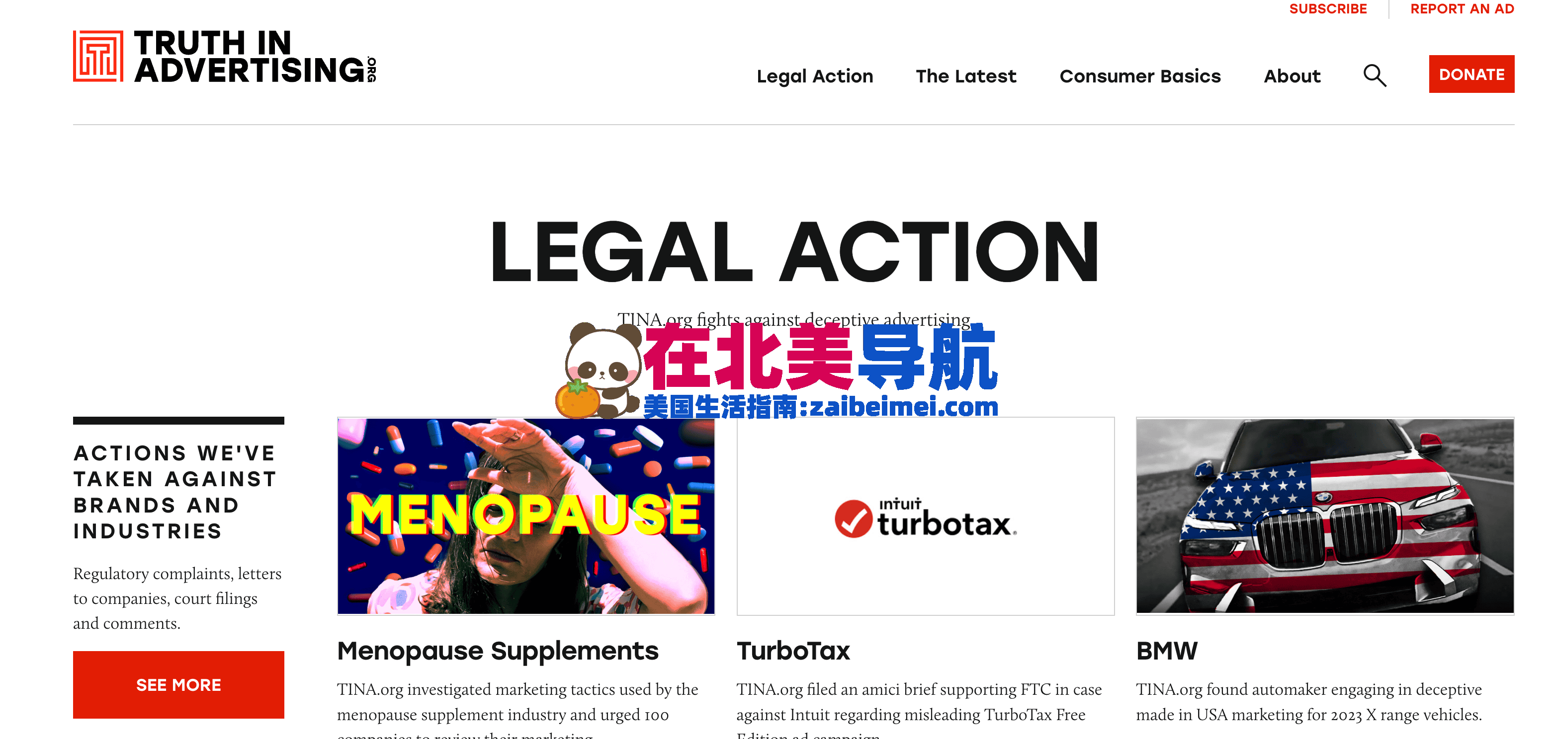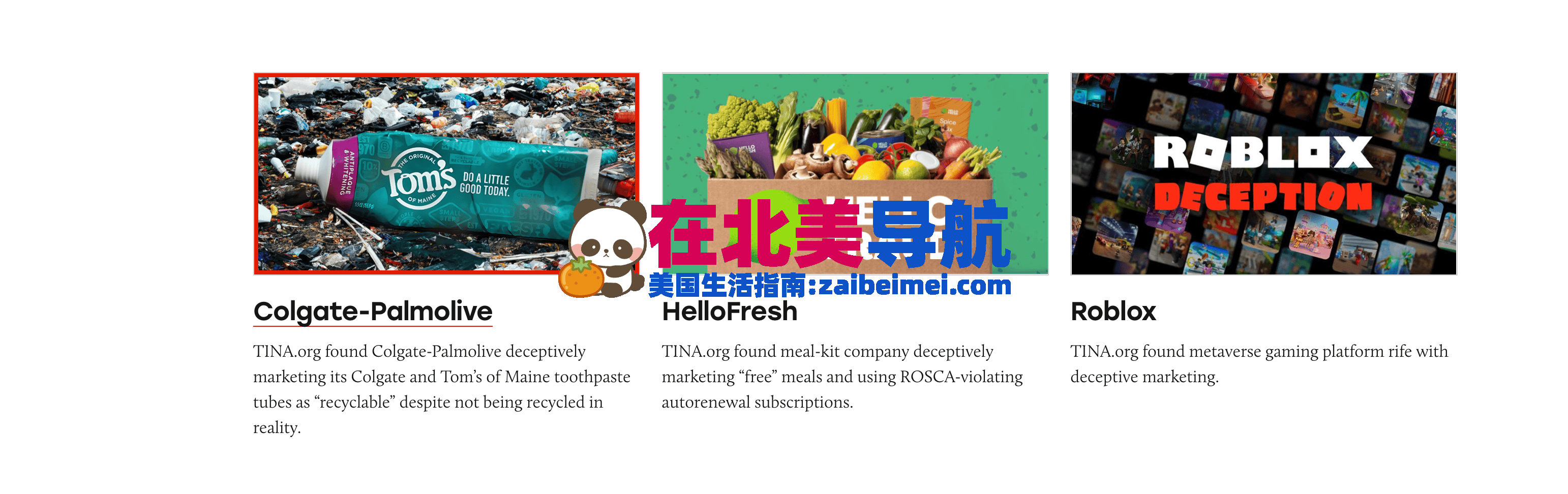 TINA.org 提供了 广告数据库,消费者可以搜索特定广告或品牌,查看其是否涉及虚假宣传。